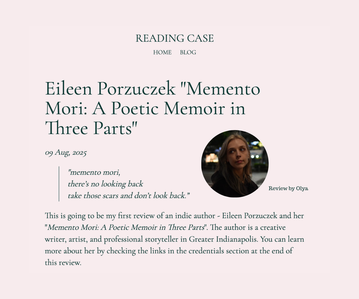 Reading Case’s Olya shares a personal review of Memento Mori: A Poetic Memoir in Three Parts by Eileen Porzuczek.